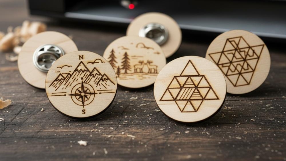 Design Numérique - Fabrication de pin's en gravure sur bois x Le Pixel