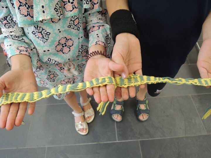 Apprenez le tissage à la grille comme il était pratiqué au Moyen Âge, et réalisez une bande de tissus colorée.