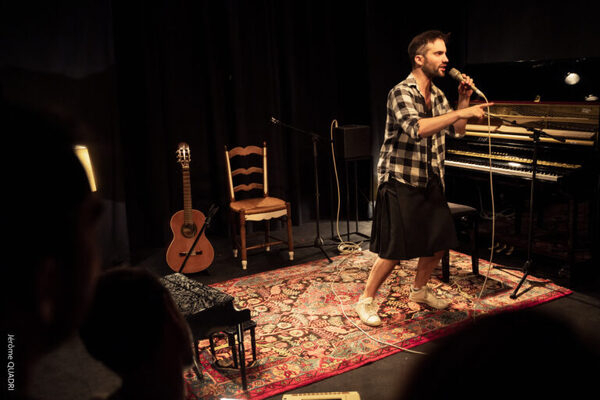 Faisant de la scène un petit salon de musique avec son tapis, ses pianos et sa guitare, Louis Caratini se penche sur le mystère de l’inspiration, fil rouge de ce tour de chant instructif et participatif. Citant tubes célèbres, plagiats et genèses de certaines chansons, il fait entendre la richesse des écritures des chansons francophones.