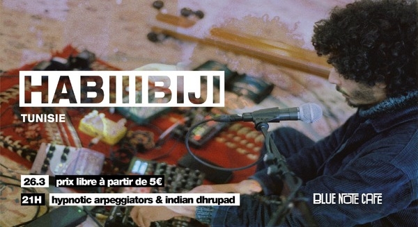 Quand la transe monte calmement, accompagnée par d'hypnotique arpeggiator, les effets croisés de pédales et de modulation de voix, l'art du dhrupad indien prend une autre tournure. HABIIIBIJI délivre une musique unique, que l'on peinerait à catégoriser et qui offre une envolée rythmée, spirituelle capable de monter en puissance progressivement au gré des sets, dans lesquels il tisse une tapisserie sonore d'une précision microtonale et d'une texture immersive. Au cœur de celle-ci se trouvent des synthétiseurs microtonaux, qui façonnent des bourdonnements vibrants et des mélodies bien tempérées avec une profondeur et une présence fortes.   Entrée TICKET ICI : lien à venir Tarif à prix libre, à partir de 5€   HABIIIIBJI  Explorateur sonore tunisien qui mêle traditions musicales anciennes et innovations modernes. Une invitation à la contemplation et au mouvement intérieur, ancrée dans les questions contemporaines, observant l'état actuel du monde.