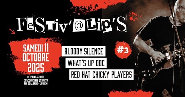 Après le succès des deux premières éditions, l'association Rock@Lips persiste et signe ! Pour cette édition elle accueille trois formations du Grand Est : Red Hat Chicky Players, What’s up doc et Bloody Silence. Red Hat Chicky Players (54) est un cover band qui rend un hommage épicé aux Red Hot Chili Peppers. What’s Up DOC (68), propose ses compositions dans un rock moderne, influencé par Led Zepplin. C'est Bloody Silence (67) qui débutera le show à cent à l'heure porté par leur rock dopé à l'énergie.
