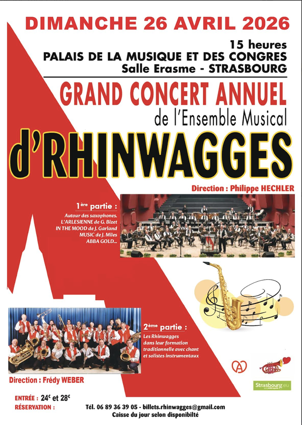 Avec une 2ième partie où les inconditionnels de la « Blosmusik » trouveront leur compte, ce concert aux multiples facettes vous procurera beaucoup d'émotions et de bonheur, grâce à la MUSIQUE et aux RHINWAGGES.
