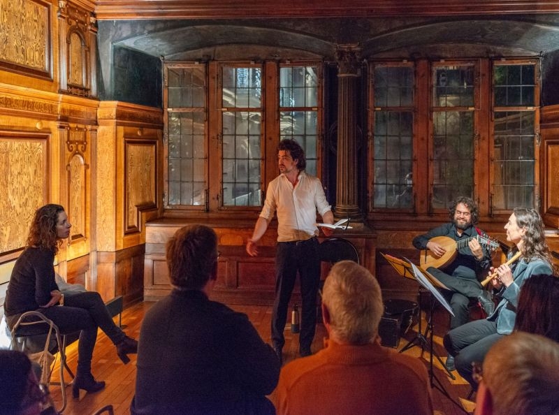 Maxime Pacaud (comédien) lit quelques extraits de la poésie satirique de Sébastien Brant, souffle l’esprit libre de Louise Labé et partage les joyeuses histoires de Jörg Wickram.
