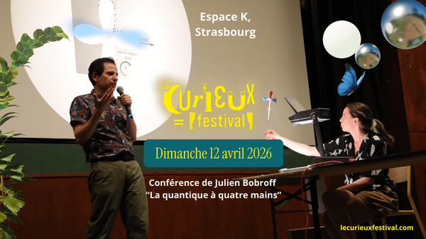 Le physicien Julien Bobroff démystifie la physique quantique avec cette conférence en quatre chapitres. Il éclaire les concepts de base comme le chat de Schrödinger et l'intrication, à la lumière des objets poétiques, colorés et étonnants de Lisa Dehove. Une conférence racontée par Julien Bobroff et illustrée en direct par les manipulations d’objets de Lisa Dehove. Dès 12 ans | Julien Bobroff et Lisa Dehove | Durée : 1h -Tarifs de 6 à 12€. Tarif à 8€ avec la Carte Curieux Festival. Tous les spectacles à maximum 10€ avec la Carte Curieux Festival. Toutes les infos sur lecurieuxfestival.com - Buvette et petite restauration sur place. - Tous les lieux du Curieux Festival sont accessibles à vélo ou en transport en commun. Spectacles, Curieuses Rencontres, et expériences insolites : les sciences se mettent en scène au Curieux Festival ! À travers théâtre, danse, musique, cirque, projections et performances, le Festival propose de répondre à un même questionnement de différentes manières, en interrogeant l’esprit et le cœur de chacun·e. Rendez-vous du 7 au 19 avril 2026 pour un condensé de curiosité, dans un esprit convivial !
