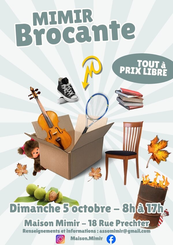 C'est la petite Brocante à Mimir le Dimanche 5 octobre 2025. Proposé par Ilyes et son collectif. Tout à prix libre... Mimir posera aussi quelques affaires de son grand rangement. Histoire d'animer le lieu avec un petit évènement utile. En salle si pluie. Ouvert à tous.tes de 8h à 17h.