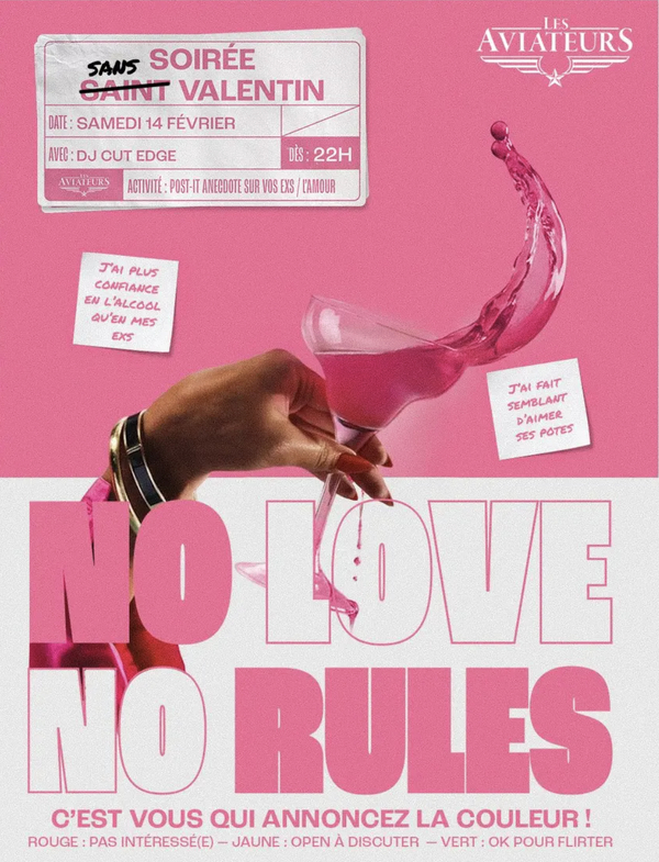 Aux Aviateurs, c’est Sans Valentin, mais jamais sans ambiance Ici, pas besoin d’être en couple, célibataire, compliqué ou “c’est encore flou”. Cette soirée, c’est pour boire, rire, flirter (ou pas) et surtout… se lâcher.