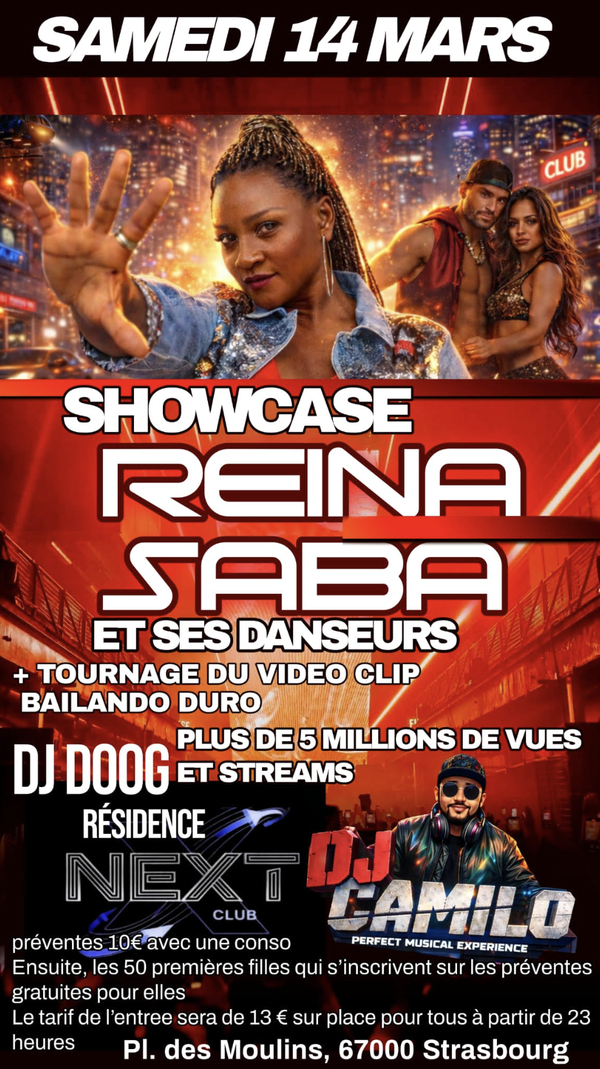 L’artiste Reina Saba se produira en showcase accompagné de ses danseurs pour une performance explosive. La soirée marquera également le tournage officiel du clip Bailando Duro, titre cumulant déjà plus de 5 millions de vues et streams.