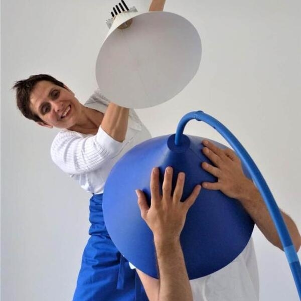 CACHe CACHé est un dispositif épuré fait de papier en blanc et bleu, qui mêle le geste avec des objets sonores, la musique, le chant et la farce.