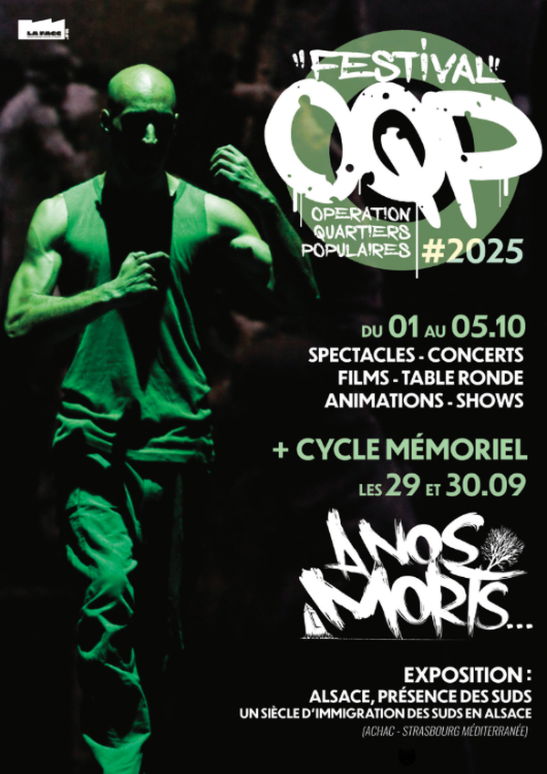 À l’occasion de sa 9ᵉ édition, le Festival OQP aura lieu du 1er au 5 octobre 2025 sur plusieurs sites : Le Point d’Eau à Ostwald, le quartier de l’Elsau, Hautepierre et de la Meinau