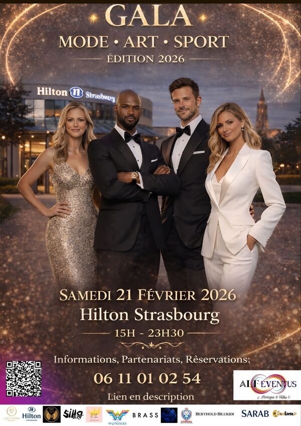 Le Gala Mode • Art • Sport – Édition 2026 se tiendra le samedi 21 février 2026 au Hilton Strasbourg, au profit de l’AS Corona Boxe Strasbourg, avec un focus particulier sur la valorisation des femmes dans le sport, la mode et l’art.