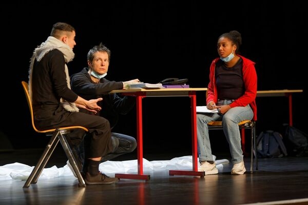 Un texte de François Hien en partenariat avec les élèves du collège Henri-Barbusse de Vaulx-en-Velin sur une proposition de Yann Lheureux Avec Yann Lheureux, Marin Moreau et Florianne Vilpont / Costumes - Paul Andriamanana Rasoamiaramanana / Scénographie - Benjamin Lebreton / Lumière - Romain de Lagarde / Son - Baptiste Tanné / Régie - Mathilde Robert