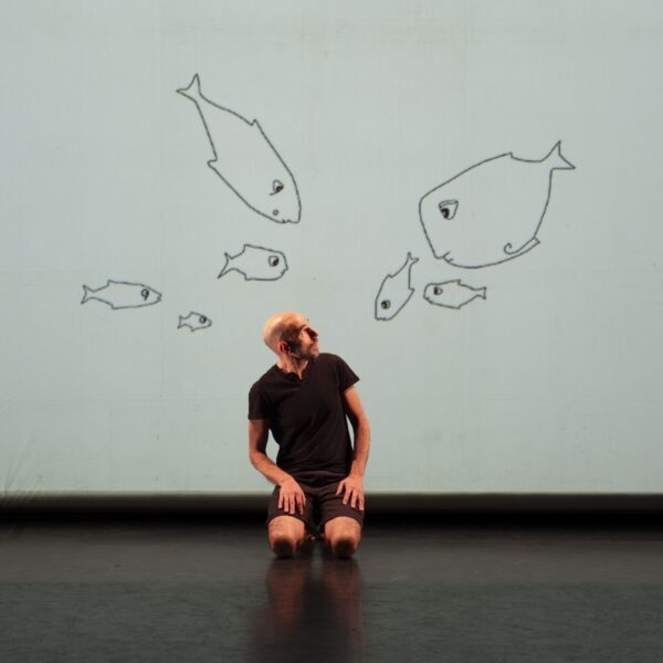 Hervé et Yoann sont deux amis qui aiment les promenades tranquilles… Observer les insectes, écouter les oiseaux, sentir le vent. Mais un jour, ils se lancent dans une quête fabuleuse : retrouver le poisson qui vit dans les arbres… Petits et grands sont invités à les suivre dans un univers visuel projeté sur grand écran, comme un livre ouvert devenu vivant. Entre dessin-animé, danse et jeu d’acteur, les deux complices explorent un monde peuplé d’animaux réels ou imaginaires. Le spectacle est né d’une amitié et d’une expérience partagée pendant le confinement : le chorégraphe Sylvain Riéjou a appris, aux côtés de l’auteur-dessinateur Hervé Walbecq, à observer les animaux autrement, à dialoguer avec eux par le corps, l’écoute et l’attention — un langage proche de la danse. Cette première collaboration artistique, inspirée du recueil de nouvelles J’attends les tritons (Éd. La Joie de lire, 2024) d’Hervé Walbecq, fait surgir une fable joyeuse et sensible où le mouvement devient un outil de lien, de jeu et d’amitié.