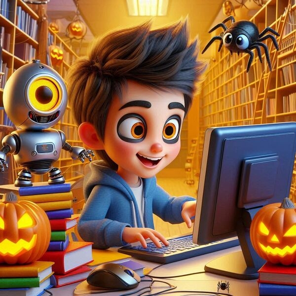 Inventez votre histoire d’Halloween avec l’aide de l’IA. Illustrez-la et créez également des affiches festives pour décorer la médiathèque.