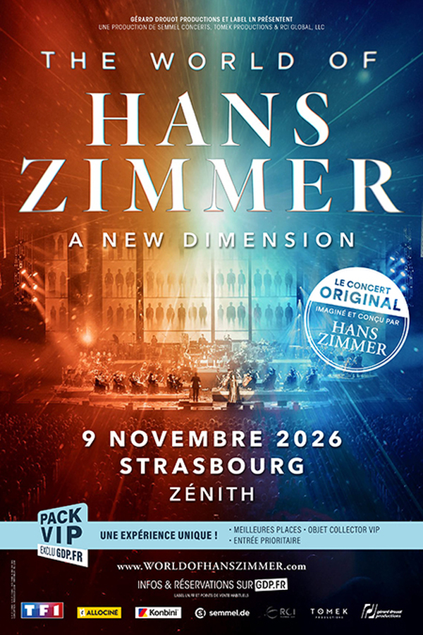 En 2026, deux séries de concerts distincts imaginé et conçu par Hans Zimmer, bien qu’il ne soit pas présent sur scène, seront proposés au public français : en mars, The Immersive Symphony, la toute dernière production de Zimmer et A New Dimension en novembre, le spectacle au succès international. Dès novembre 2026, A New Dimension l’autre concert à la renommée mondiale sera de nouveau en tournée européenne sur les plus grandes scènes. The World of Hans Zimmer, a déjà attiré à ce jour 1,2 million de spectateurs. Le public français peut s’attendre à un tourbillon d’émotions à l’écoute des œuvres captivantes les plus iconiques du compositeur grâce à Matt Dunkley, talentueux chef d’orchestre nominé à plusieurs reprises aux Grammy® Awards, rejoint par certains des meilleurs solistes de Hans Zimmer, l’Odessa Orchestra & Friends et l'extraordinaire chorale Nairobi Chamber Chorus.