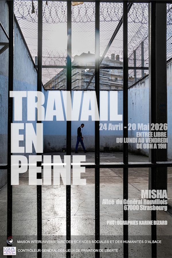 Il permet d’avoir une fonction, une utilité, d’être attendu quelque part et de faire quelque chose de ses mains. Même s’il est peu payé, peu qualifiant, souvent répétitif et sans réel débouché, le travail occupe et maintient debout. En prison, le travail empêche l’effondrement intérieur, donne un rythme aux journées, casse la répétition du néant et évite de tourner en rond. Pourtant, le travail n’apparait dans les prisons que par fragments. Il est trop rare, et reste réservé à une minorité de personnes détenues, tant il y a peu de place et beaucoup d’attente. Mes images montrent les formes visibles, mécaniques, monotones ou assignées du travail, mais aussi comment, en creux, pour ceux qui n’y ont pas accès, le temps s’étire et finit par courber les dos. « Travail en peine » est une invitation à nous interroger sur la place réelle que nous accordons au travail dans l’univers carcéral. Exposition réalisée par Karine Bizard, Photographe du Contrôle général des lieux de privation de liberté.