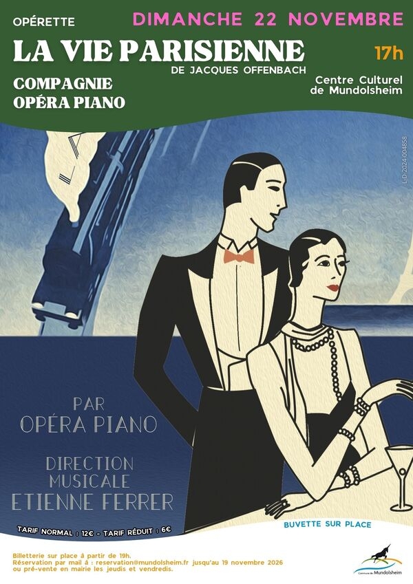 Sous la direction musicale d’Étienne Ferrer, la compagnie Opéra Piano vous présente l’un des ouvrages les plus pétillants du répertoire. Orchestre, danseurs, choristes et solistes feront vibrer la scène pour vous entraîner au cœur d’un Paris festif et tourbillonnant. L’histoire nous plonge dans une cité souveraine où le plaisir est roi. Une foule bigarrée d’aristocrates, de bourgeois de retour de Deauville, d’ouvriers et d’hommes d’affaires venus du monde entier se précipite dans le tourbillon grisant des nuits parisiennes. Dans cet opéra-bouffe, tout scintille : la musique, les répliques et les danses endiablées. Entre quiproquos et séductions, laissez-vous emporter par des airs célèbres comme celui du Brésilien, du Baron ou de la Veuve du Colonel, sans oublier l’incontournable French Cancan. Une célébration pleine d’humour et de légèreté de l’art de vivre à la française.